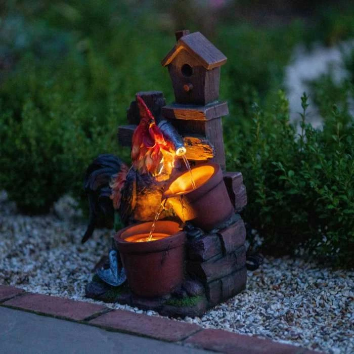 Thankfully this cockerel won’t crow at the crack of dawn, instead the fountain will start pouring as soon as the sunlight hits it for some calming stream sounds. Made from UV- and frost-resistant polyresin (to resist life’s wear and tears) it’s sure to be a garden focal point for years to come, and all it needs is a sunny spot to get the water flowing. And, with LED lights to illuminate the water flow and feature, you can enjoy every part of this fountain come day or night (with battery backup!).