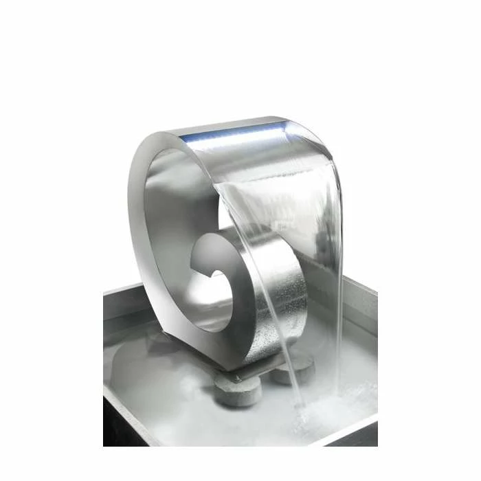 - Water feature will stand alone in the stainless steel reservoir on concrete blocks