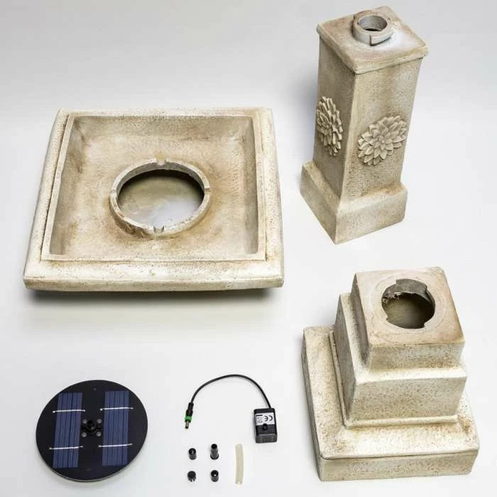 Striking in pale stone-effect polyresin, this gorgeous solar powered birdbath is reminiscent of the pale pillars of Greek and Roman design. Add a touch of antiquity to any space in your garden with this birdbath. This product is self contained and solar powered, meaning you can position it anywhere in the garden, even paved or decked areas.
